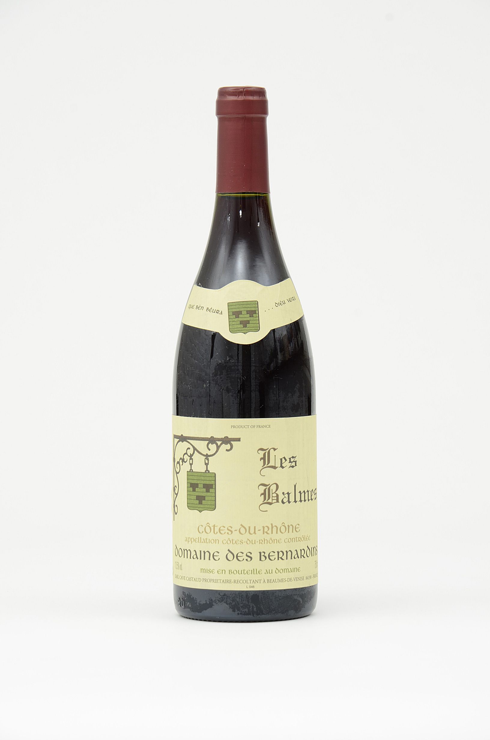 Le nez évoque les fleurs séchées, les fruits cuits (cerise, myrtille), avec une note mentholée. La bouche, très fruitée, est souple et se termine sur des tanins biens fondus. Le domaine : Propriété familiale depuis 5 générations, le domaine des Bernardins appartenait jadis aux moines de Bernardins. Aujourd’hui Elisabeth et Andrew Hall (l’actuel maître de chai) et leur fils Romain, l’œnologue du domaine, exploitent le vignoble. Le domaine des Bernardins est célèbre pour ses vins doux naturels en AOC Beaumes de Venise (moelleux), mais également pour son blanc sec "le doré des Bernardins" et ses vins rouges basés sur le grenache et la syrah. Agneau, fromages.